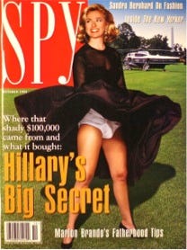 The symbolic equation between untrammeled power and the phallus did not originate with the fanciful conjuring of psychoanalysts with too much time on their hands. We can find it etched on the ancient Greek pottery used to commemorate military victories, which featured erect penises and scenes of losers in a war being anally raped. It can also be found in the imagery of contemporary editorial cartoons. In my 2005 book, The Wimp Factor, I describe numerous iterations of this theme. In the 1990s, Hillary Clinton redefined the role of First Lady. Determined not to be a demure, cookie-baker standing by her man, she showed herself to be an intellectual and wonky power-house partner to her husband, Bill. That defiance of female gender norms ushered in decades of right-wing depictions of her as both a castrator of men and the one in the marriage who not only wore the pants but also the package. Even Spy Magazine made an unsubtle contribution to this genre. Their cover featured an alteration of the famous Marilyn Monroe photo over a heating grate. Photoshopped with the head of Hillary, it showed hot air blowing the hem of her skirt upwards, revealing a pair of men’s underwear fully equipped with a penis.