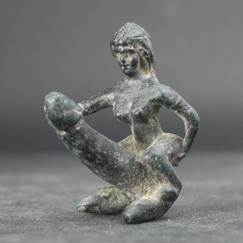 The phallic woman is depicted in this reproduction of an ancient Roman sculpture.